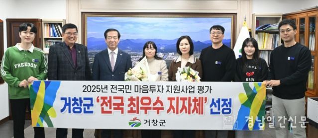 경남일간신문 | 거창군은 보건복지부가 주관하는 ‘전국민 마음투자 지원사업’ 평가에서 전국 최우수 지자체로 선정됐다고 지난 23일 밝혔다.