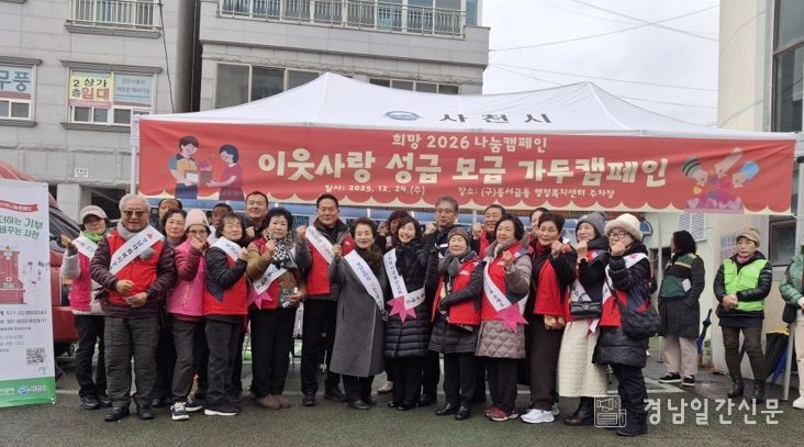 한편, 경남사회복지공동모금회가 주관하고 사천시가 후원하는 ‘희망 2026 나눔 캠페인’은 내년 1월 31일까지 진행되며, 뜻있는 개인 및 기관‧단체에서는 시청 주민복지과 및 읍면동 행정복지센터를 통해 모금 활동에 참여할 수 있다.
