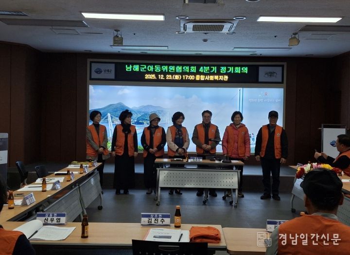 경남일간신문 | 남해군 아동위원협의회(회장 하미자)는 지난 23일 종합사회복지관 다목적홀에서 아동위원 15명이 참석한 가운데 2025년도 4분기 정기회의를 개최했다.