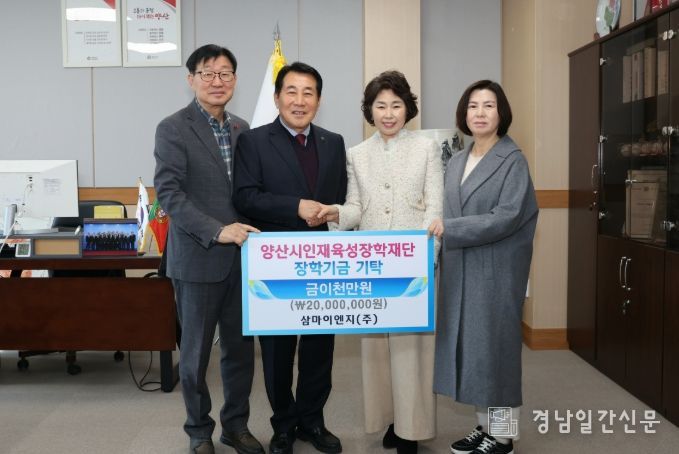 이희종 이사장은 “연말을 맞아 삼마이엔지에서 미래 세대를 위해 나눔을 실천해 주셔서 감사드린다”며 “기탁해 주신 장학금은 양산의 청소년들에게 소중히 쓰일 수 있도록 하겠다”고 감사의 뜻을 전했다.