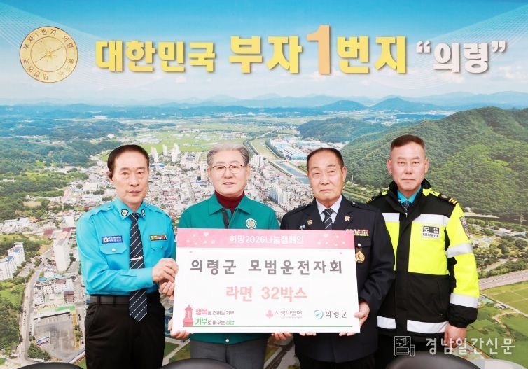 경남일간신문 | 의령군은 지난 30일, 연말 이웃돕기를 위해 의령군 모범운전자회가 라면 32박스(100만 원 상당)를 기탁했다고 밝혔다.