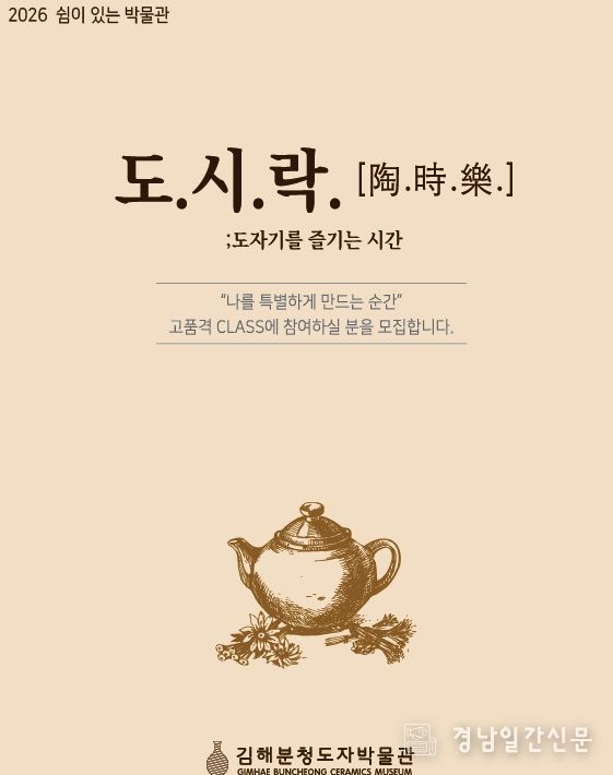 경남일간신문 | 김해분청도자박물관 대표 문화행사로 자리매김한 '도.시.락.[陶.時.樂.];도자기를 즐기는 시간'이 2026년 연초부터 본격적으로 운영된다.