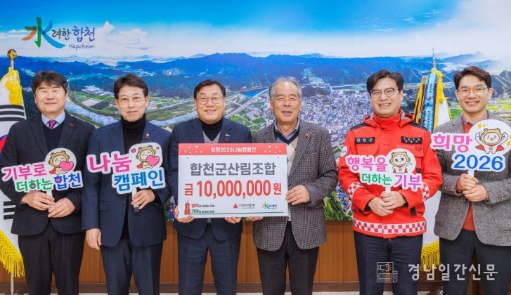 김윤철 합천군수는 “매년 변함없는 따뜻한 나눔을 실천해 주시는 합천군산림조합에 깊이 감사드린다”며 “기탁된 성금은 도움이 꼭 필요한 이웃들에게 소중히 전달 하겠다”고 전했다.