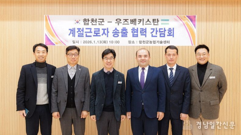 경남일간신문 | 합천군은 농번기 만성적인 인력난을 해소하고 안정적인 인력 수급체계를 구축하기 위해 13일 농업기술센터에서 ‘우즈베키스탄 외국인계절근로자 송출 협력 간담회’를 개최했다.