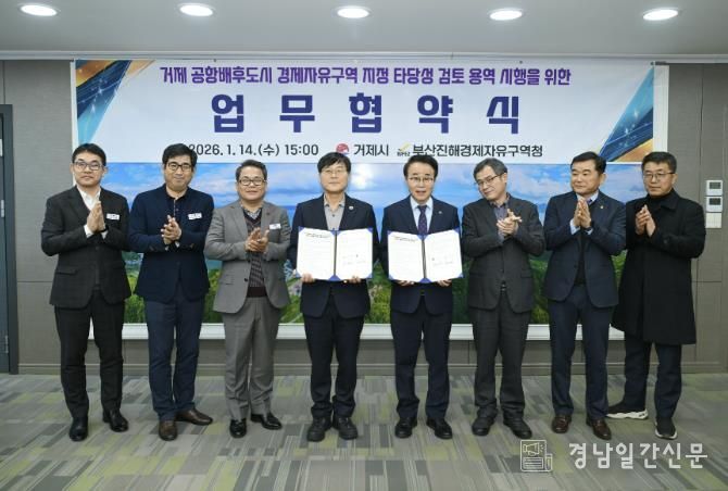 경남일간신문 | 거제시는 14일, 부산진해경제자유구역청(청장 박성호)과 경제자유구역 거제 확대를 위한 협력체계 구축 및 타당성 검토 용역 공동 추진을 위한 협약을 체결했다.