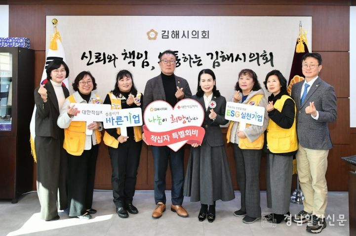 경남일간신문 | 김해시의회는 지난 16일 시의회 의장실에서 대한적십자사 경남지사에 2026년도 적십자 특별회비를 전달하며 어려운 이웃을 위한 따뜻한 나눔에 동참했다.