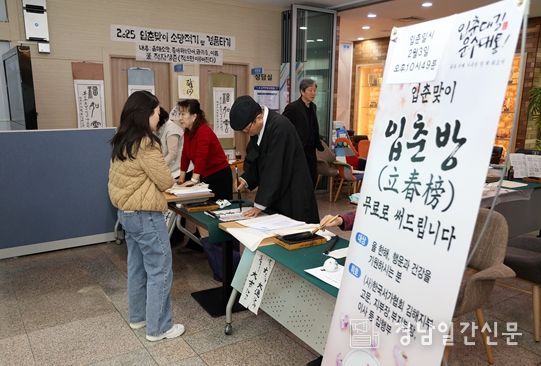 경남일간신문 | 김해시는 봄의 시작을 알리는 절기인 입춘을 맞아 시민들의 한 해 무사와 복을 기원하는 입춘방 나눔 및 서예체험 행사를 개최한다고 20일 밝혔다.