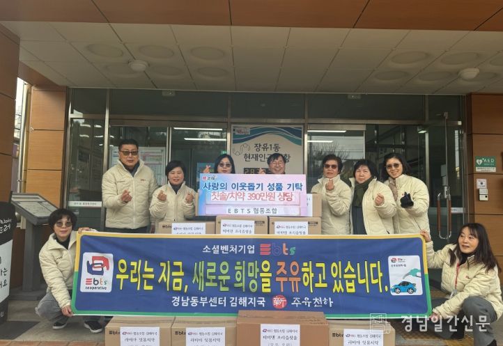 경남일간신문 | 김해시 장유1동은 지난 23일 EBTS협동조합 김해지국(지국장 홍두연)에서 장유1동 주민을 위해 써달라며 390만원 상당의 칫솔과 치약을 기탁했다고 밝혔다.
