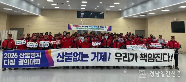 경남일간신문 | 최근 지속되는 건조한 날씨로 대형 산불 발생위험이 높아지고 있는 가운데, 거제시는 23일 거제시청에서 산불방지 감시인력을 대상으로 특별교육과 산불예방 결의대회를 개최했다.