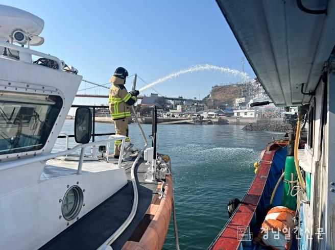 경남일간신문 | 사천해양경찰서는 오늘(27일) 오후 2시 하동군 구노량항에서 밀집 계류지 어선 화재 사고를 가정한 합동훈련을 실시했다고 밝혔다.
