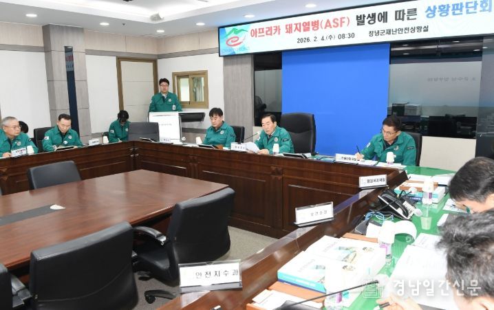 경남일간신문 | 창녕군은 4일 대합면 소재 양돈농가에서 아프리카돼지열병(ASF)이 확인됨에 따라, 2월 4일 오전 군수 주재로 상황판단회의를 개최하고 초기 대응 상황 점검 및 추가 확산 차단을 위한 대응 방안을 집중 논의했다.