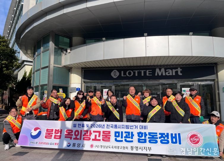 경남일간신문 | 통영시는 설 연휴를 맞아 고향을 찾는 귀성객과 관광객들에게 쾌적하고 안전한 거리 환경을 제공하기 위해 지난 4일 경상남도 옥외광고협회 통영시지부와 함께 불법 옥외광고물 일제 정비 활동과 근절 캠페인을 실시했다.