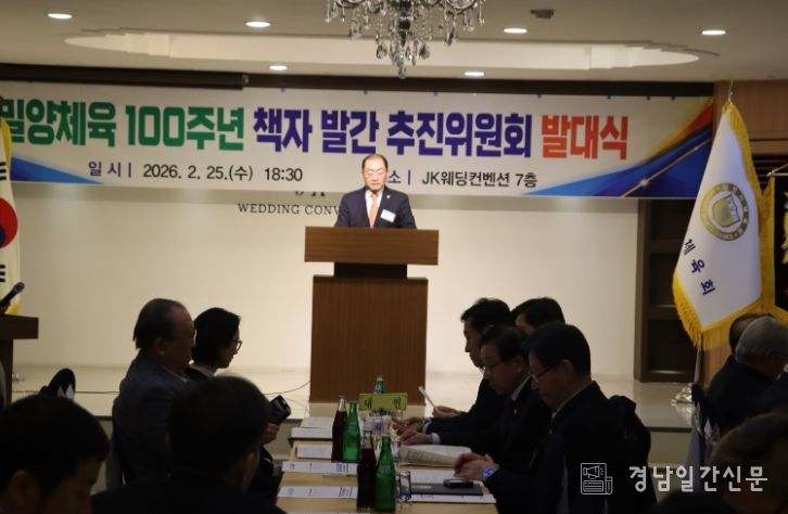경남일간신문 | 밀양시체육회(회장 민경갑)는 지난 25일 JK웨딩컨벤션에서 ‘2026년 밀양시체육회 정기총회’와 ‘밀양체육 100주년 책자 발간을 위한 추진위원 위촉 및 발대식’을 개최했다.