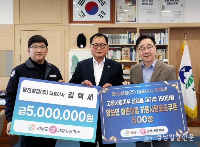 경남일간신문 | 하동군은 지난 10일 진주시체육회 김택세 회장이 5백만 원의 고향사랑기부금을 전달했다고 밝혔다.