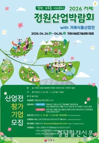 경남일간신문 | 정원식물과 다양한 정원자재를 한자리에서 만나볼 수 있는‘2026 거제정원산업박람회’가 오는 4월 24일부터 26일까지 3일간 거제시 농업기술센터 일원에서 개최된다.