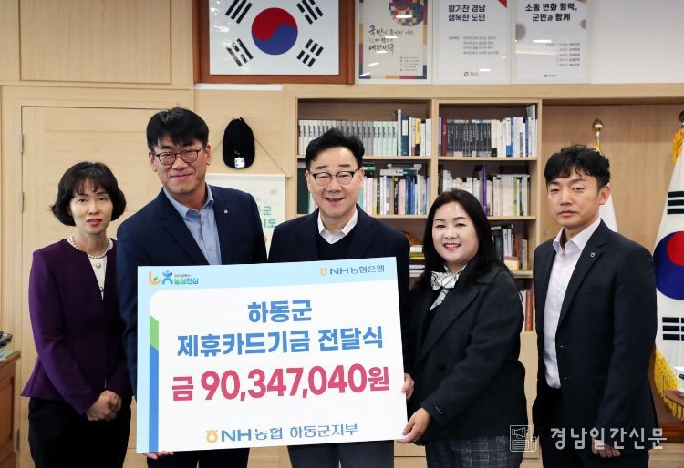 경남일간신문 | 하동군은 지난 17일 NH농협은행 하동군지부(지부장 장주익)로부터 제휴카드 사용에 따른 적립 기금 9035만 원을 전달받았다고 밝혔다.