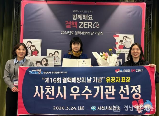 사천시보건소는 24일 서울 영등포구 글래드 여의도에서 열린 ‘제16회 결핵예방의 날’ 기념식에서 국가 결핵 예방사업에 기여한 공로로 질병관리청장 표창을 받았다.