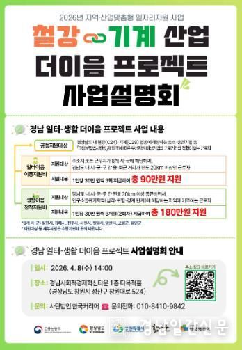 경남일간신문 | 창원특례시는 오는 4월 8일 오후 2시 경남사회적경제혁신타운 1층 다목적홀에서 ‘2026 철강·기계산업 일터-생활 더이음 프로젝트’ 사업설명회를 개최한다고 밝혔다.