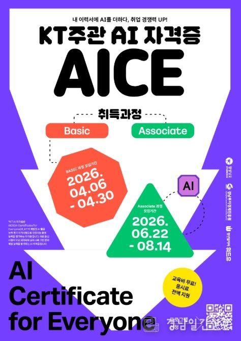 경남일간신문 | 경남투자경제진흥원(원장 오재호)은 도내 청년들의 디지털 역량 강화와 취업 경쟁력 제고를 위해 AI 자격증 과정인 ‘KT AICE(AI Certificate for Everyone) 교육과정’을 운영한다고 밝혔다.