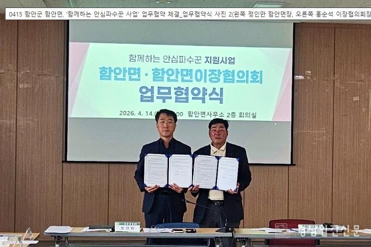 이번 업무 협약으로 함안면과 이장협의회는 민관 협력을 바탕으로 복지 사각지대에 놓인 위기가구를 조기에 발굴하고, 맞춤형 지원을 연계해 복지 욕구가 해소될 수 있도록 협력사업을 더욱 확대해 나갈 것을 약속했다.