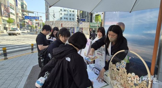 경남일간신문 | 거제시는 지난 15일 고현동과 옥포동 중심가 사거리에서 아동학대 예방과 생명존중 문화 확산을 위한 거리 캠페인을 진행했다.
