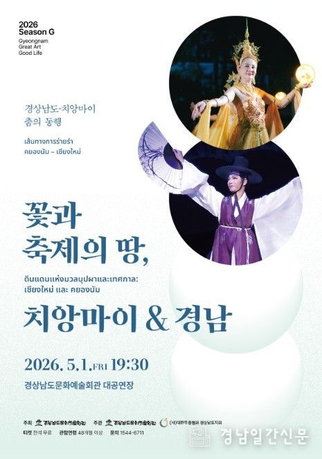 경남일간신문 | 경상남도문화예술회관은 5월 1일 오후 7시 30분 대공연장에서 '경상남도-치앙마이 춤의 동행 ‘꽃과 축제의 땅, 치앙마이 & 경남’' 공연을 개최한다고 밝혔다.