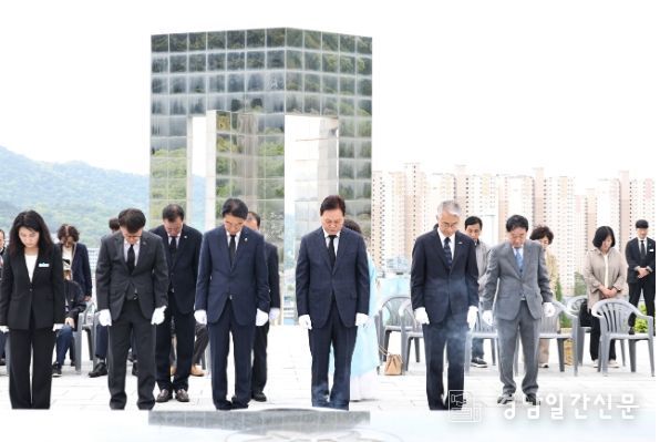박 지사는 참배 후 방명록에 “정권독재와 부정선거에 항거했던 4·19 정신을 이어받아 경남 발전에 힘쓰겠습니다”라고 적으며 민주주의 가치 계승을 통한 도정 발전의 의지를 기록했다.