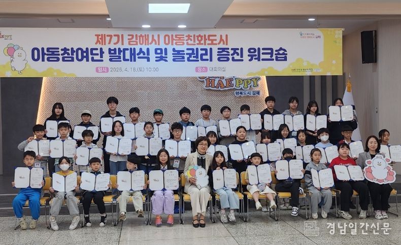 경남일간신문 | 김해시는 지난 18일 시청 대회의실에서 아동의 참여권이 실현되는 아동친화 도시 조성을 위한 ‘제7기 아동참여단 발대식 및 아동 놀권리 증진 워크숍’을 개최했다고 밝혔다.