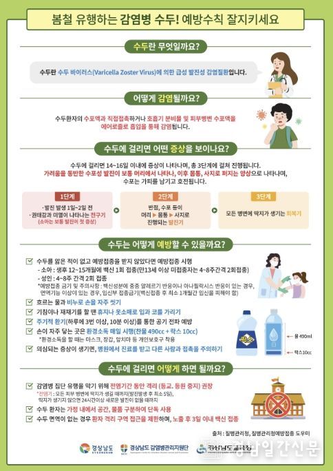 경남일간신문 | 거제시보건소는 최근 도내 학교와 학원 등 집단 시설을 중심으로 수두 환자가 증가함에 따라, 예방접종과 개인위생수칙 준수를 철저히 해줄 것을 당부했다.