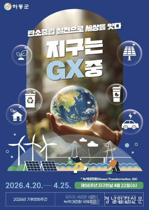경남일간신문 | 하동군은 제56주년 지구의 날을 맞아 4월 20일부터 24일까지 ‘제18회 기후변화주간’을 운영한다고 밝혔다.