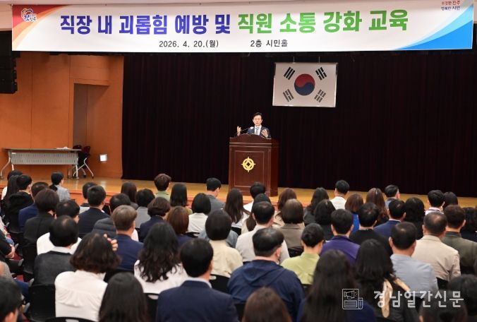 경남일간신문 | 진주시는 20일 시청 시민홀에서 직원 250여 명을 대상으로 ‘직장 내 괴롭힘 예방 및 직원 소통 강화 교육’을 실시했다고 밝혔다.