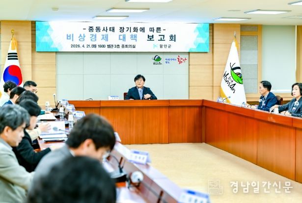 경남일간신문 | 함안군은 중동전쟁 장기화에 따른 고유가와 원자재 수급 불안에 대응하기 위해 지난 21일 군청 중회의실에서 ‘비상경제 대책 보고회’를 개최하고 전방위 비상경제 대응체계를 가동했다고 밝혔다.
