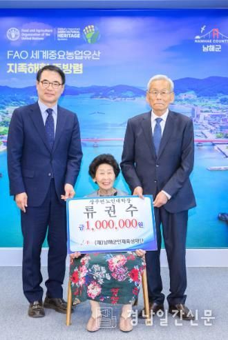 경남일간신문 | (재)남해군인재육성재단은 올해 구순을 맞은 류권수 상주면 노인대학장이 100만 원의 인재육성기금을 기탁했다고 밝혔다.