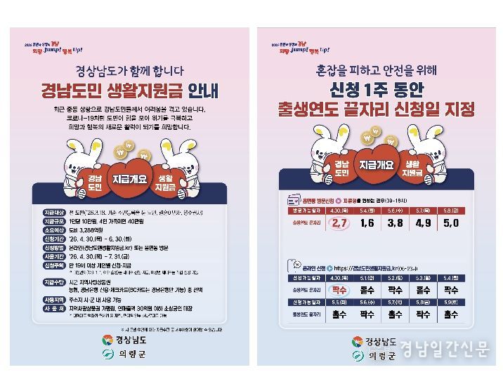 경남일간신문 | 의령군은 전 도민을 대상으로 하는 ‘경남도민 생활지원금’을 오는 4월 30일부터 지급한다고 밝혔다.