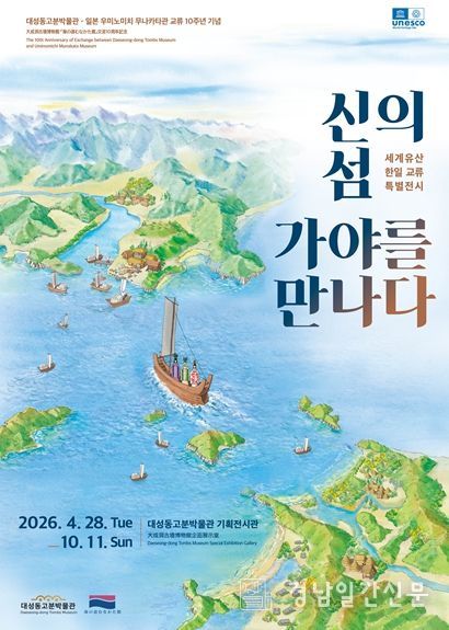 유네스코 세계유산으로 등재된 한국의 대성동고분군과 일본의 ‘신이 머무는 섬’ 무나카타·오키노시마와 관련 유산군에서 출토된 유물을 한자리에서 비교 전시해 양국 유산의 가치를 재조명한다.