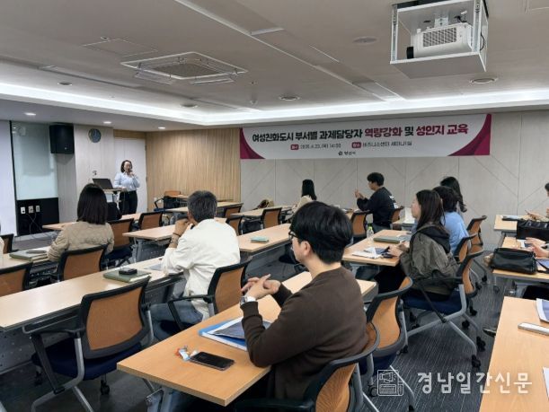 경남일간신문 | 양산시는 23일 비즈니스센터에서 부서별 여성친화도시 과제를 담당하는 공무원을 대상으로 역량강화교육을 실시했다.