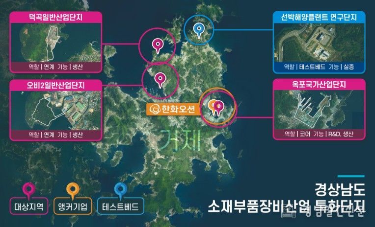 경남이 소부장 특화단지의 최적지로 꼽히는 이유는 세계 최대 규모의 조선산업 집적지이기 때문이다. 거제는 옥포·죽도 국가산업단지를 중심으로 한화오션 등 대형 조선사가 있고, 인근 창원·통영·고성·사천에 관련 기업과 선박해양플랜트연구소, 중소선박연구소 등 연구기관이 밀집해 있어 ‘조선해양플랜트 소부장 특화단지’ 조성에 최적의 입지로 평가된다.