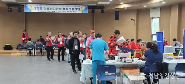 경남일간신문 | 산청군은 지난 23일 산청군가족문화센터에서 산불전문진화대원과 산불감시원을 대상으로 특수검진과 일반건강검진을 실시했다고 27일 밝혔다.