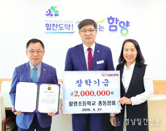 경남일간신문 | (재)함양군장학회는 4월 27일 팔령초등학교 총동창회(회장 박갑열)가 지역 인재 육성을 위한 장학금 200만 원을 기탁했다고 밝혔다.