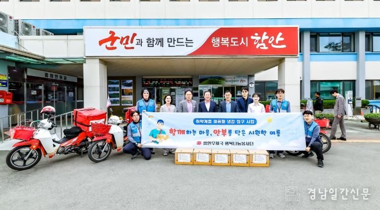 함안우체국 관계자는 “무더운 여름철 취약계층이 더 시원하고 건강하게 지낼 수 있도록 실질적인 도움이 되는 물품을 준비했다”며 “앞으로도 지역사회와 함께하는 따뜻한 나눔 활동을 지속적으로 이어가겠다”고 밝혔다.