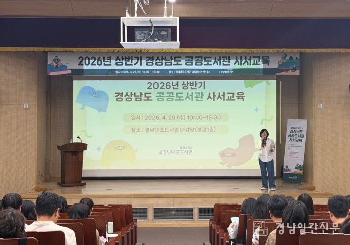 경남일간신문 | 경남대표도서관은 29일 경남대표도서관 대강당에서 도내 공공도서관 사서와 도서관 직원을 대상으로 ‘2026년 상반기 공공도서관 사서교육’을 실시했다.