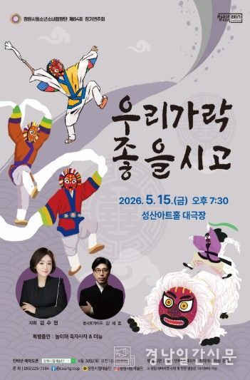 경남일간신문 | 창원특례시는 오는 5월 15일 오후 7시 30분, 성산아트홀 대극장에서 창원시립소년소녀합창단의 제84회 정기연주회를 개최한다고 밝혔다. 이번 공연은 ‘우리가락 좋을시고’라는 주제로, 김수현 상임지휘자(음악감독)의 지휘 아래 관객들에게 흥겨운 우리가락과 장단을 통해 흥과 멋이 가득한 무대를 선사할 예정이다.