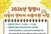 경남일간신문 | 경남 밀양시는 다자녀 가정의 이동 편의를 돕고 가족이 함께하는 여가 문화를 조성하기 위해 ‘2026년 밀양시 다둥이 렌터카 비용 지원 사업’을 추진한다고 밝혔다. 이번 사업은 고향사랑기부금을 재원으로 활용하여 진행된다. 다자녀 가정에 렌터카 대여료 등을 지원함으로써 아이들과 함께 소중한 추억을 쌓을 기회를 제공하고, 가족 간 유대감을 강화하는 데 목적이 있다. 신청 대상은 자녀가 2명 이상인 가정(그중 1명 이상은 만 19세 미만)으로, 부모 모두와 자녀 2명 이상이 신청일 기준으로 6개월 이상 밀양시에 주민등록을 두고 거주 중인 가정이다. 지원 내용은 렌터카 대여료를 비롯해 카시트 대여료, 차량 보험료 등이 포함되며, 지원 금액은 2자녀 가정 최대 30만 원, 3자녀 이상 가정 최대 40만 원이다. 선정된 가정은 지원 결정일로부터 3개월 이내에 렌터카를 이용하고 비용 지원을 신청해야 한다. 사업 신청 기간은 4월 13일부터 7월 31일까지이며, 거주지 읍·면·동 행정복지센터를 방문해 신청할 수 있다. 단, 예산 소진 시 조기에 마감될 수 있다. 아울러 밀양시는 고향사랑