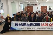 경남일간신문 | 동남해노인대학이 15일 삼동면종합복지회관 3층 회의실에서 제16회 수료식을 개최했다. 이날 수료식에는 졸업생 50여 명이 참석한 가운데 노인강령 낭독, 개근상 및 정근상 시상, 학사보고 및 학장 인사, 축사 등의 순으로 진행됐다. 최태정 학장은 “지난 1년동안 교육 과정을 수료하신 어르신들께 축하인사를 드린다.”며 “내년에도 건강한 모습으로 어르신들을 뵙기를 바란다.”고 밝혔다. 이상일 삼동면장은 축사를 통해 “어르신들께서 노인대학에서 보여주신 배움의 열정과 아름다운 도전에 존경과 축하의 말씀을 전하며, 졸업은 끝이 아니라 새로운 시작으로 대학에서 배운 것들과 경험을 바탕으로 즐겁고 건강하게 지내시길 바란다.”고 축하의 인사를 전했다. 한편 동남해노인대학은 매주 월요일 오전 9시30분부터 2시간씩 노래교실, 건강체조 등 다양한 교육과정을 운영하면서 지역 어르신들의 배움과 여가선용의 장으로 자리매김하고 있다.
