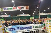 경남일간신문 | 밀양시 농산물 유통상생협의회는 지난 20일 서울 가락농수산물종합도매시장을 방문해 지역 농산물 유통 경쟁력 강화를 위한 현장 활동을 펼쳤다. 이날 회원 20명이 참가한 가운데 현지 강서농협과 강서구청, 직판장 관계자들과 간담회를 갖고 밀양 농산물이 시장에서 제값을 받을 수 있도록 협조를 요청했다. 또한 경매인과 중도매인을 대상으로 밀양 농산물을 소개하며 안정적인 판로 확보를 위한 활동을 이어갔다. 회원들은 밀양 농산물을 취급하는 주요 청과 상회를 방문하고 농산물 경매 현장을 참관했다. 이를 통해 산지에서 출하된 농산물이 경매를 거쳐 중도매인과 물류 과정을 통해 소비지로 유통되는 흐름을 확인하며 시장 운영 방식과 가격 형성 구조에 대해 의견을 나눴다. 한편, 협의회는 가락시장 방문에 앞서 서울 강서농협 하나로마트 농산물 직거래 판매행사장을 찾아 밀양 딸기 반값 할인 행사를 진행했다. 준비된 물량이 이른 시간 내 전량 소진되는 등 소비자들의 큰 호응을 얻었다. 밀양시 관계자는 “밀양 농산물이 제값을 받을 수 있도록 도매시장 관계자들의 적극적인 협조를