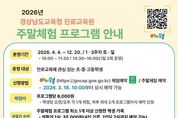 경남일간신문 | 경남 밀양시는 지역 내 위치한 경상남도교육청 진로교육원에서 운영하는 ‘2026년 주말체험 프로그램’을 시민들에게 적극 홍보하고 나섰다. 진로교육원은 오는 4월 4일부터 매월 1·3주 토요일과 일요일에 도내·외 초·중·고 학생을 대상으로 ‘2026년 주말체험 프로그램’을 운영한다. 이번 프로그램은 학생들이 직업 세계를 직접 체험하며 자신의 적성과 관심 분야를 탐색하고, 체계적인 진로 설계를 할 수 있도록 돕기 위해 마련됐다. 주말 진로체험은 ▲인공지능(AI) ▲미래산업 ▲문화예술 ▲생태환경 ▲건강안전 ▲창업·창직 등 6대 미래 핵심 분야를 중심으로 총 12개 강좌가 운영된다. 상반기에는 탐색 중심의 ‘꿈결 과정’(로봇 퍼포먼스 개발자, 메타버스 건축가, 북 디자이너, 스마트팜 전문가, 영양관리 전문가, 푸드 크리에이터 등)이, 하반기에는 진로 설계 중심의 ‘꿈나래 과정’(AI 웹툰 작가, 항공우주 공학자, 초콜라티에, 업사이클링 디자이너, 운동재활 전문가, 캔들 아티스트 등)이 진행된다. 또한, 프로그램은 기초와 심화 과정으로 구성되어 단계적인 학습을 지원하며, 가족이 함께 참여하는