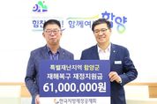 경남일간신문 | 함양군은 22일 행정안전부 산하 지방재정 전문기관인 한국지방재정공제회(이사장 정선용)로부터 특별재난지역 재해복구 재정지원금 6,100만 원을 전달받았다. 한국지방재정공제회는 전국 자치단체와 출자·출연 기관을 대상으로 다양한 재정지원 사업을 펼치는 기관으로, 2012년부터 특별재난지역으로 선포된 자치단체에 재해복구 비용을 지원하고 있다. 이날 함양군청을 방문한 임묵 지방재정공제회 공제사업본부장과 임직원은 재정지원금을 전달했으며, “수해를 입은 함양군민들에게 위로의 뜻을 전한다”라며 “앞으로도 재정공제회의 다양한 사업이 함양군에 도움이 될 수 있도록 최선을 다하겠다”라고 전했다. 진병영 함양군수는 “이번 재정지원금이 피해를 본 군민들에게 위로와 희망이 되길 바란다”라며 “피해 복구에 최선을 다해 군민들이 일상을 하루빨리 회복할 수 있게 하겠다”라고 강조했다.