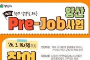 경남일간신문 | 양산시는 미취업 청년들에게 직무·관심 분야의 실무경험을 제공하고 관내 사업장으로의 연계 채용을 활성화하기 위한 ‘2026년 청년 일경험 제공 '양산 Pre-Job 사업'’ 참여 청년을 오는 3월 19일까지 정기 모집한다고 밝혔다. 모집 대상은 직무 및 관심 분야의 일 경험을 체험하고자 하는, 구직 의사 있는 관내 미취·창업 청년이다. 공고일 또는 신청일 기준 19세 이상 39세 이하여야 하며, 군 복무를 마친 청년은 복무기간에 비례하여 최대 3세(최대 42세)까지 참여 연령이 연장된다. 기본적으로 양산시 관내 거주를 원칙으로 하나, 참여하고자 하는 사업장의 유형에 따라 경남 도내까지 확대될 수 있다(Ⅰ유형). 다만, ▲사업 참여 중 관외 전출 예정인 자 ▲이미 취업에 성공했거나 취업이 결정된 자 ▲국가 또는 다른 지방자치단체로부터 인건비를 지원받는 자 ▲직전년도 동일 사업 참여자 ▲참여 사업장 사업주의 배우자 및 직계비속 등은 지원 대상에서 제외되니 유의하여야 한다. 2026년도에는 총 29개 사업장이 선발되어 33개의 일경험 프로그램을 제공할 예정이다. 프