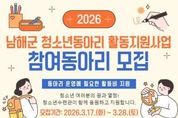 경남일간신문 | 남해군청소년수련관이 ‘2026년 남해군 청소년동아리 활동지원사업’에 참여할 청소년동아리를 이달 28일까지 모집한다. 선정 규모는 10개팀으로, 심사 결과에 따라 팀당 최대 50만 원의 활동비가 지원된다. 청소년동아리 활동지원사업은 자발적이고 주체적인 청소년동아리 활동을 활성화하고 청소년들의 다양한 재능 계발과 진로탐색 기회를 확대하기 위해 시행되는 국가정책 사업이다. 지원 대상은 남해군 내 학교에 재학 중이거나, 남해군 내 주소가 등록된 9~24세 청소년 5명 이상과 지도자 1명으로 구성된 동아리로, 연중 10회 이상 자체 활동을 운영하고 동아리 연합회 및 청소년축제 등에 참여할 수 있어야 한다. 참가신청은 3월17일부터 28일까지 가능하며, 자세한 사항은 남해군청 누리집의 새소식란을 참고하거나 청소년수련관으로 문의하면 된다.