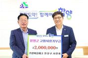 경남일간신문 | 함양군은 8일 오전 ㈜한마음테크의 천상구 대표이사가 함양군청을 방문하여 고향사랑기부금 200만 원을 전달했다고 밝혔다. 전달식은 이날 오전 11시 30분 군수실에서 진행됐으며, 천상구 대표이사 직접 참석해 지역사회 발전에 이바지할 수 있는 의미 있는 시간을 가졌다. 천상구 대표이사는 “오늘 이 자리에 함께하지 못했지만, 배우자인 하연희 대표의 고향이 함양군 백전면”이라며, “비록 내가 나고 자란 곳은 아니지만 제2의 고향인 함양을 사랑하는 마음을 담아 기부에 참여하게 되어 기쁘다. 앞으로도 함양 발전을 위해 계속해서 관심을 가지도록 노력하겠다”라고 기부 소감을 밝혔다. 이에 진병영 함양군수는 “함양군을 위해 따뜻한 마음을 보내주신 천상구, 하연희 대표님께 진심으로 감사드린다”라며 “소중한 기부금은 함양군 발전과 군민 복리 증진을 위해 꼭 필요한 곳에 사용하겠다. 이번 기부가 고향사랑기부제 활성화에 큰 힘이 될 것”이라고 화답했다.